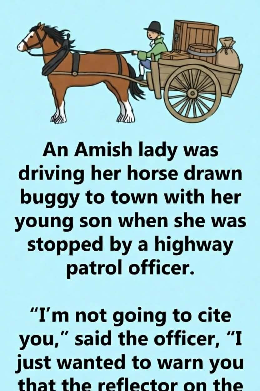 The Amish farmer looked up slowly from his workbench when his wife finished speaking. “Emergency brake?” he repeated, setting his hammer down. “Aye,” she said plainly. “The officer said one of the reins was tied around the horse’s testicles. He said some might call it cruelty to animals and that thee should check it.”