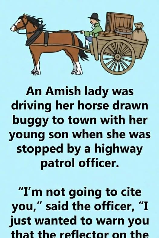 The Amish farmer looked up slowly from his workbench when his wife finished speaking. “Emergency brake?” he repeated, setting his hammer down. “Aye,” she said plainly. “The officer said one of the reins was tied around the horse’s testicles. He said some might call it cruelty to animals and that thee should check it.”