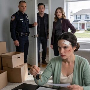 Ryan looked from the officer to the ring to me. I was standing near the staircase with a fresh bandage on the right side of my face…