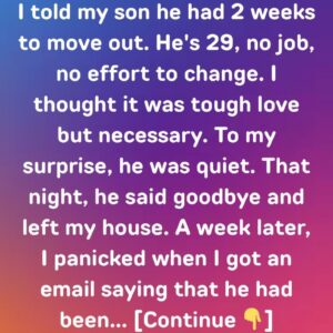 After years of supporting my 29-year-old son Daniel—paying his bills, stocking his fridge, and watching him drift without direction—I finally told him he had two weeks to…