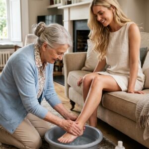 At seventy-eight, my son’s fiancée ordered me to kneel and wash her feet in my own home. I thought that was the lowest point—until the doorbell rang and someone behind her demanded, “What the hell is going on?”